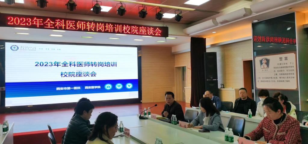 为全面了解陕西省全科医生转岗培训学员的临床实践情况,协助学员及时解决实践过程中遇到的问题,进一步提高临床实践培训质量。3月3日下午,伟德国际victor1946院长崔军海带领培训部工作人员前往西安市第一医院参加陕西省全科医生转岗培训校院座谈会。西安市第一医院总会计师蔡秀莲、科教科主任吴松迪、班主任及培训学员共计33人参加了座谈会。