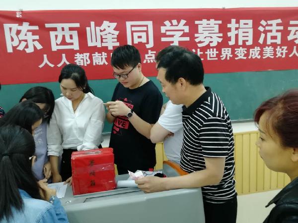 陈西峰同学来自于渭南市华州区瓜坡卫生院,是伟德国际victor19462018年全科医生转岗培训学员,该学员于2018年5月11日在家突发脑溢血,昏迷不醒,急诊住进了渭南市中心医院,随后在医院进行了两次开颅手术治疗。目前,病人意识已经恢复,但后续还需要继续进行康复治疗,“一方有难,八方支援”,伟德国际victor1946师生知道这一消息后, 即刻自发组织了献爱心募捐活动。捐款活动在《感恩的心》的音乐中进行,每个人的脸上都充满着关切的神情,让我们深刻感受到,爱让大家的心紧紧相连,相信只要人人都能献出一点爱,我们的世界会变成美好的人间。相信这些善款能为陈西峰战胜病魔增添一份力量。