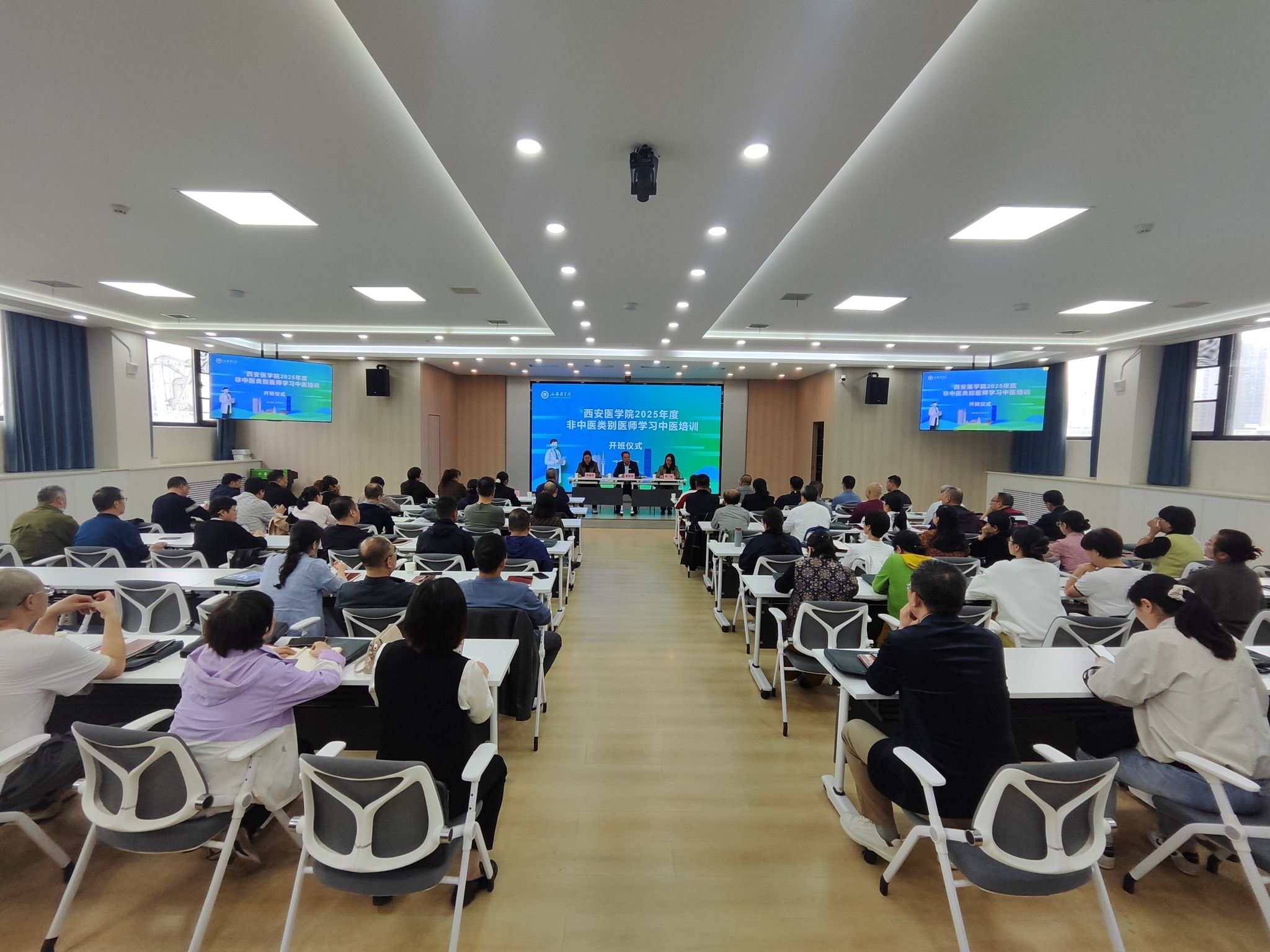 9月26日下午,伟德国际victor19462025年非中医类别医师学习中医培训在高新校区顺利举行。伟德国际victor1946院长崔军海、副院长李新华、党政办公室主任李冰出席开班仪式,来自西安市64名培训学员参会,会议由李新华主持。