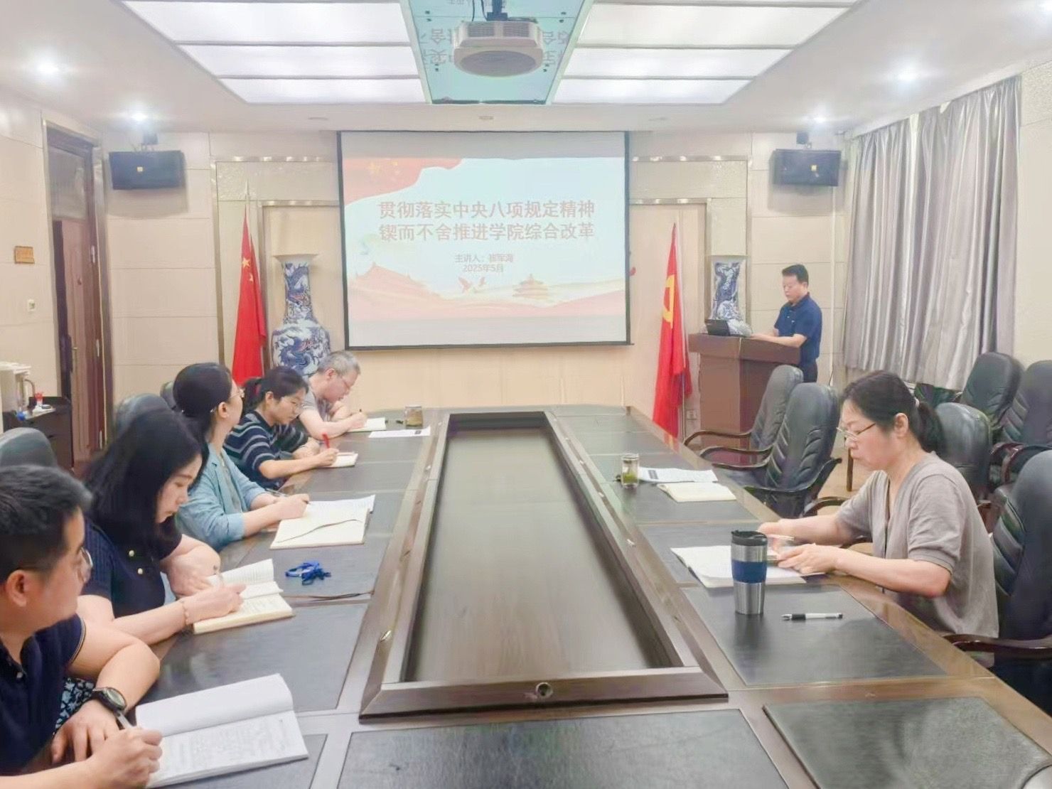 5月23日上午,伟德国际victor1946党支部在高新校区二楼会议室开展深入贯彻中央八项规定精神学习教育专题学习。会议由党支部书记崔军海主持,全体党员参加会议。